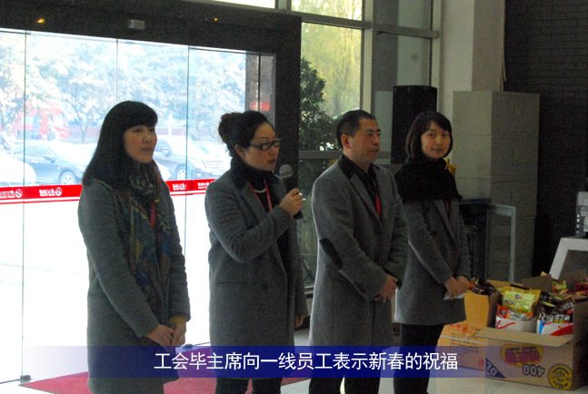 2014年1月21日上午九点,由尊龙网站首页党支部、工会委员会主席毕守英、工会成员李长江、刘爽、吴金梅等组成的慰问小组,在新春佳节来临之际开展了春节“送温暖”活动,向生产一线、后勤保障优秀员工表示祝贺,并给他们送去了慰问金、慰问品和节日的问候。