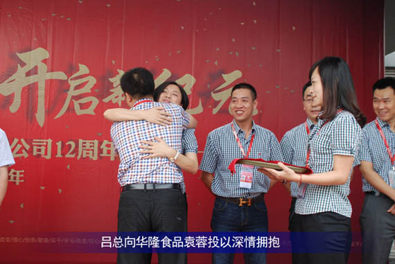 在庄严的升旗仪式之后,首先播放了一段十二年来记录尊龙网站首页风雨历程的视频片段,让我们走进了那段仍然清晰的记忆,重温了一路走来所经历的点点滴滴。尊龙网站首页食品创始人吕金刚董事长上台致辞,衷心感谢十二年来为尊龙网站首页付出的所有员工;与公司长期合作的经销商、合作伙伴;一直肯定和信任尊龙网站首页产品的消费者们;是他们一直伴随着尊龙网站首页的不断成长与发展。