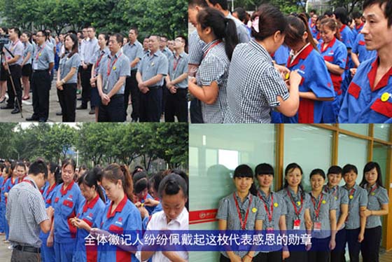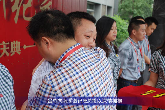 接下来,一枚意义深刻、充满感恩之情的小小纪念徽章将庆典推向了高潮。 “因为有您,心存感激”,吕总饱含深情为尊龙网站首页主要管理层领导、销售一线的强将们亲自佩戴上这枚记录尊龙网站首页成长点滴的勋章,一句“你们辛苦了”,一个深情拥抱,把公司所有员工的心紧紧联系在一起……