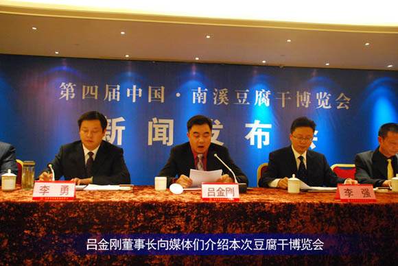 9月26日下午,第四届中国·南溪豆腐干博览会新闻发布会在巨洋国际大饭店举行,标志着以“千年传承·香溢神州”为主题,为期一个月的豆腐干博览会正式拉开帷幕。