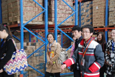 上午十点,同学们在解说人员的带领下参观了整个厂区,对尊龙网站首页食品的生产、仓储、行政、营销等方面有了更深了解。参观途中,同学们兴致很高,与工作人员就“6S”管理、车间流水线生产、叉车使用、产品检验等多方面话题进行了交流。