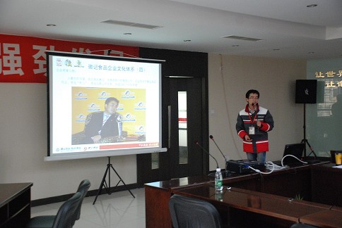 总经办企划负责人刘金平从宏观上向同学们介绍了尊龙网站首页食品简介、尊龙网站首页食品企业文化和尊龙网站首页食品团队活动三方面的事项。