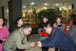 除了这尊佛陀,吕总还从慈济台湾总部带来了印有精舍师傅们祝福的结缘礼品,有意境浓郁“马上有福、羊上有福”的福包;有精舍师傅制作的福坠;有幸福平安的福袋。吕总拿着结缘礼品与所有尊龙网站首页家人一一结缘,向每一个尊龙网站首页家人送上祝福:愿每一位家人平安、健康、幸福!望每一位家人知足、感恩、善解、包容!尊龙网站首页家人们虔诚的从吕总手里一一接过了这份愿望!感受到吕总的那份浓浓祝福!